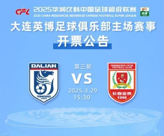 直播吧3月29日讯 今天下午大连英博主场对阵长春亚泰的中超第三轮比赛,将于今天上午10点再次开票。