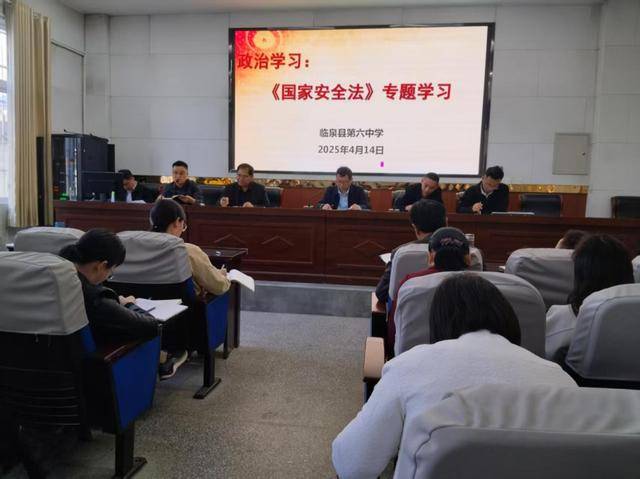 为加强全体教职工国家安全意识,营造良好国家安全教育氛围,近日,临泉县第六中学在学校会议室召开《中华人民共和国国家安全法》专题学习会。