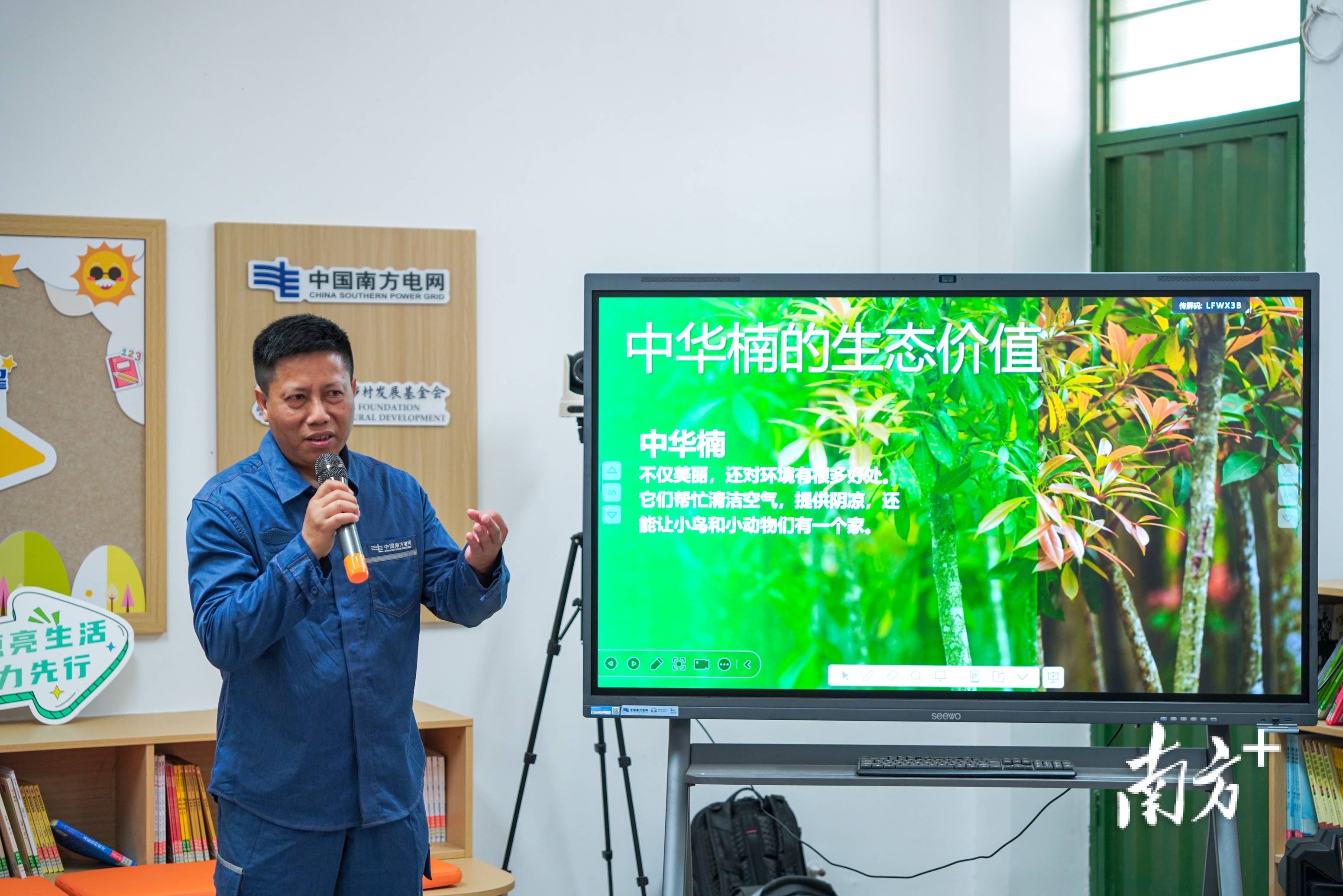 “这是中华楠木,中华楠是我们国家二级保护植物,大家如果遇到了要注意保护哦。”郑琼奕点开科普宣教PPT向学生们介绍起海岛植被和海洋保护的重要性,呼吁学生加强生态保护,守护绿美海岛。