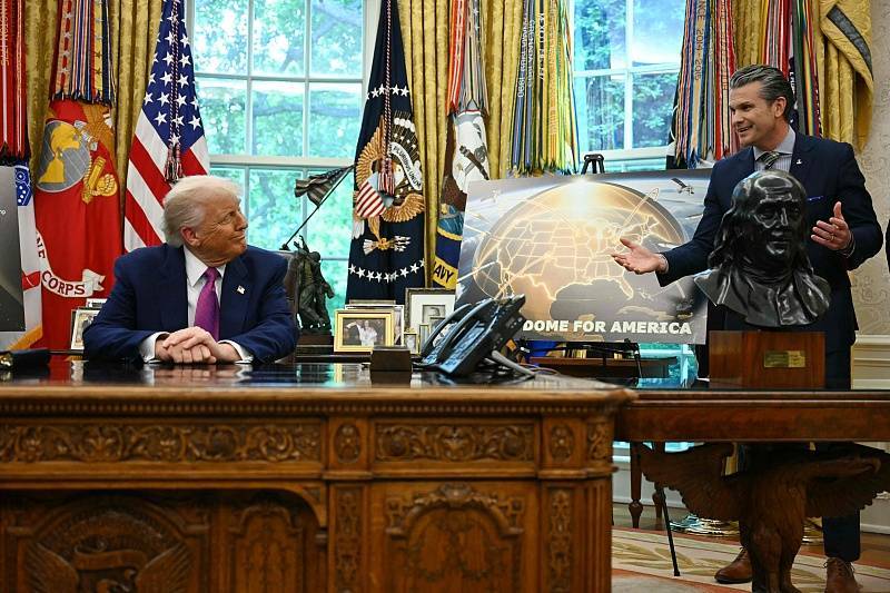 5月20日,特朗普在白宫宣布建造“金色穹顶”。视觉中国
